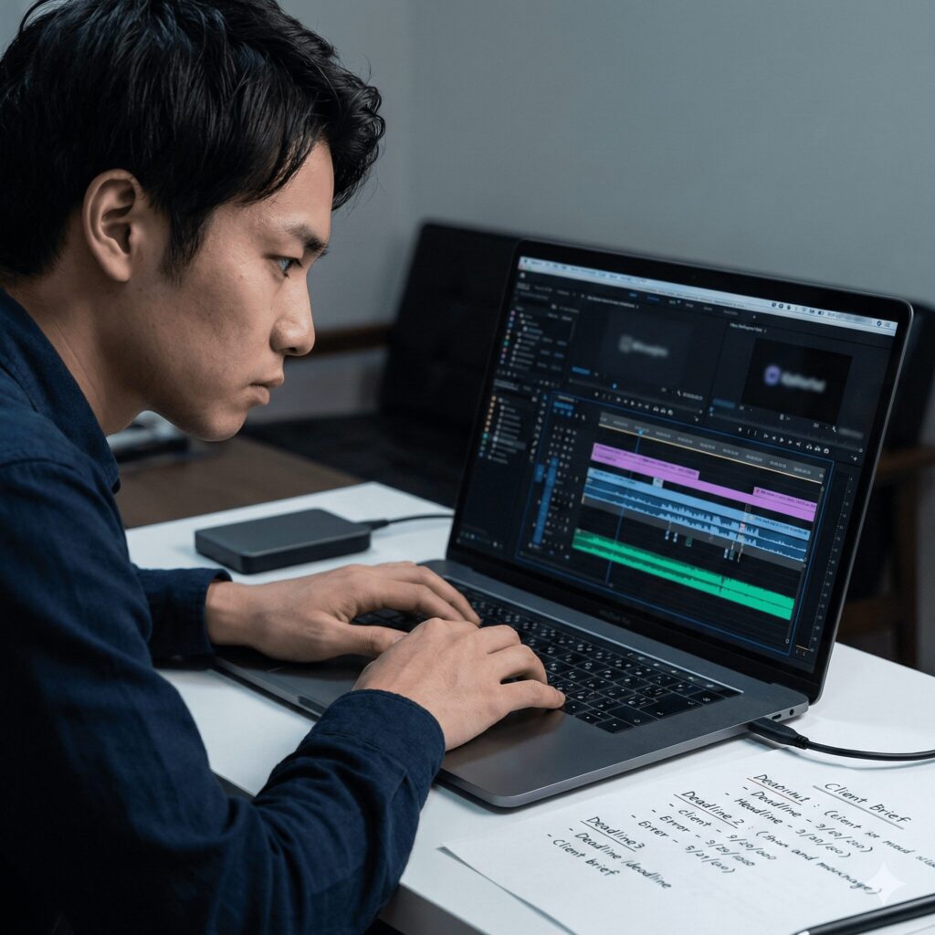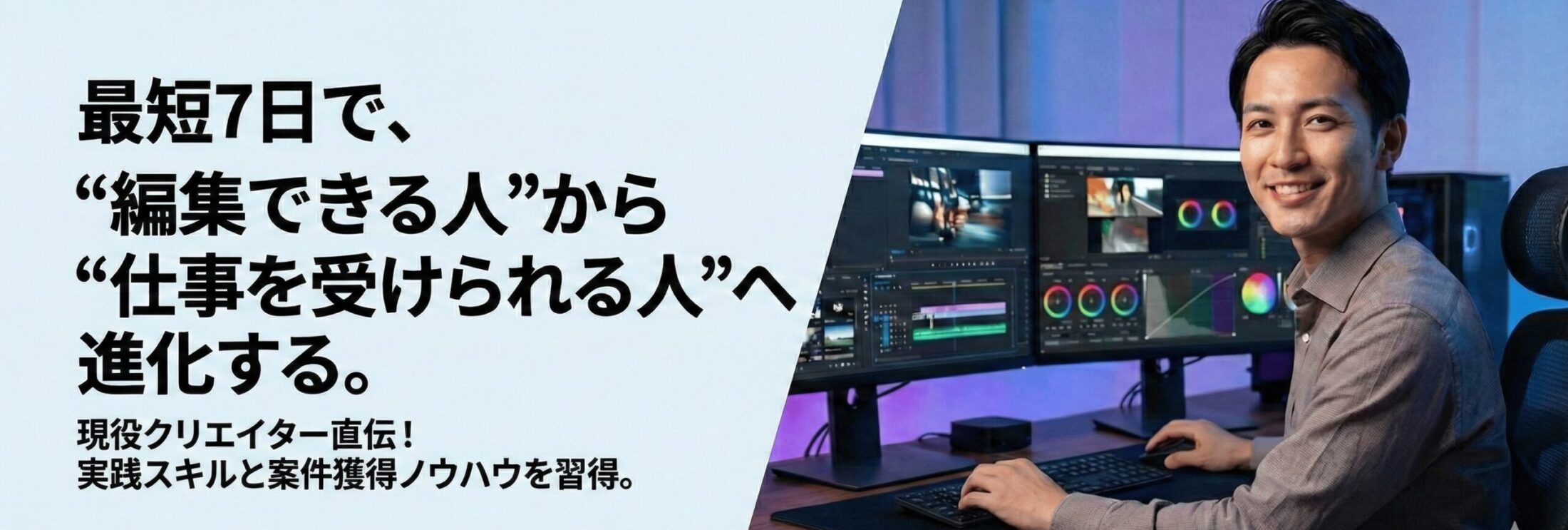 その結果、「編集はできるが、仕事として通用するか分からない」という状態から、「依頼内容に沿って編集を完了させられる」状態へと変わります。これはスキルの有無ではなく、仕事として成立する基準を理解しているかどうかの差であり、案件獲得後のトラブル防止にもつながります。